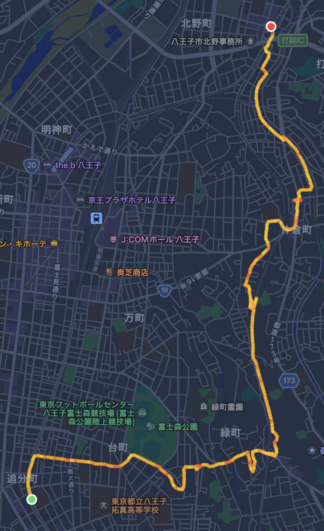 こんな感じのルートでした。お散歩をするのにちょうど良いのどかなコースでした。今日は散歩ができて良い日でした!