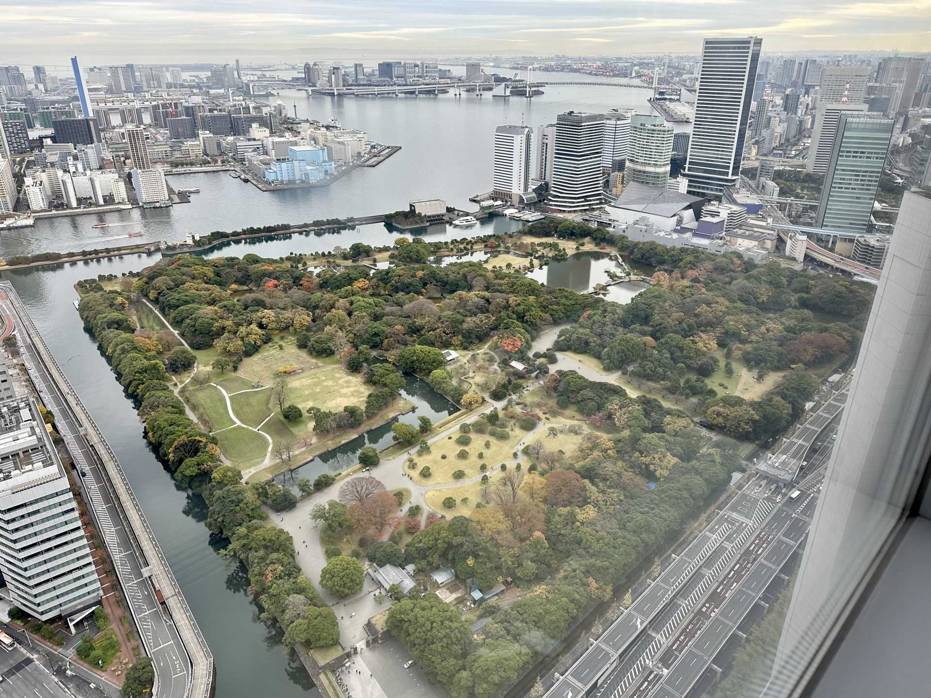 浜離宮庭園を真上から見ることができます。