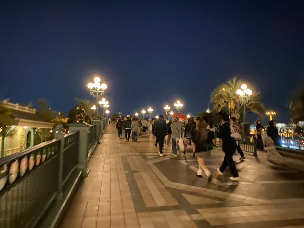 ところでディズニーの隣の施設なので、当然ディズニー帰りの人間が周りに無限人います。